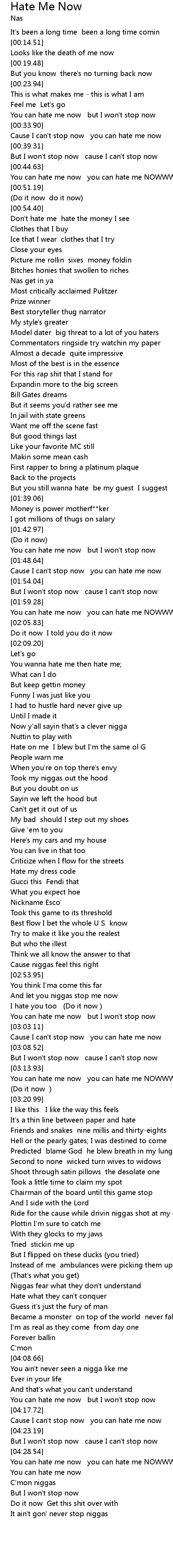 | [00:30.31] | You can hate me now but I won't stop now |