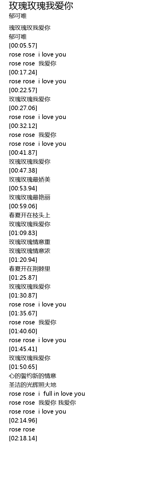 | [02:05.28] | rose rose wǒ ài nǐ wǒ ài nǐ |