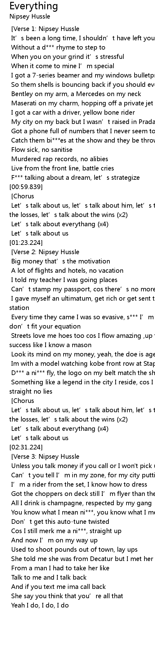 | [01:23.568] [Verse 2: Nipsey Hussle] | |