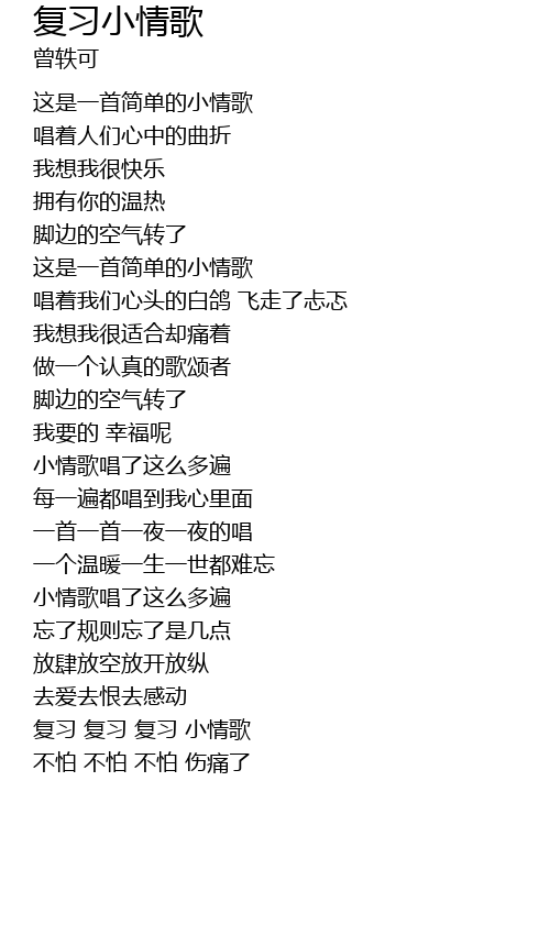 | [01:39.930] | 复习 复习 复习 小情歌 |