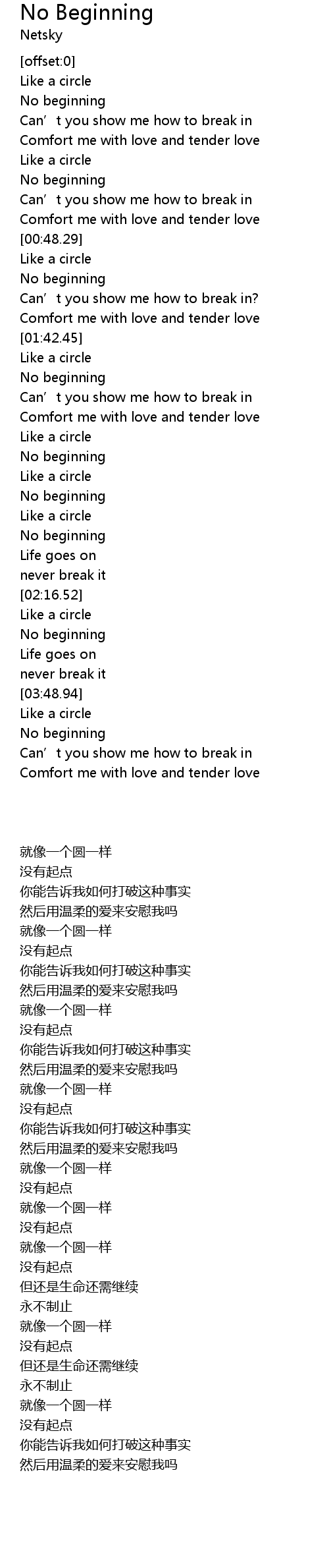 | [03:39.96] | No beginning |