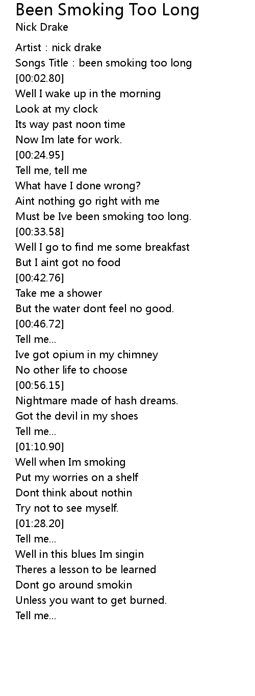 | [00:01.23] | Songs Title:been smoking too long |
