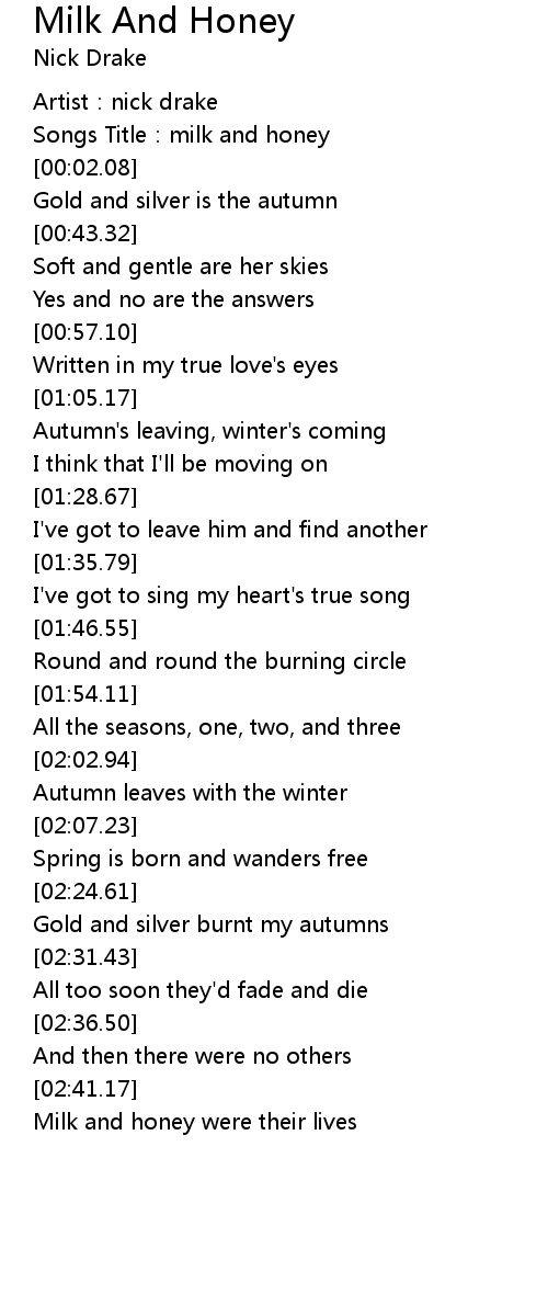 | [01:15.85] | Autumn's leaving, winter's coming |
