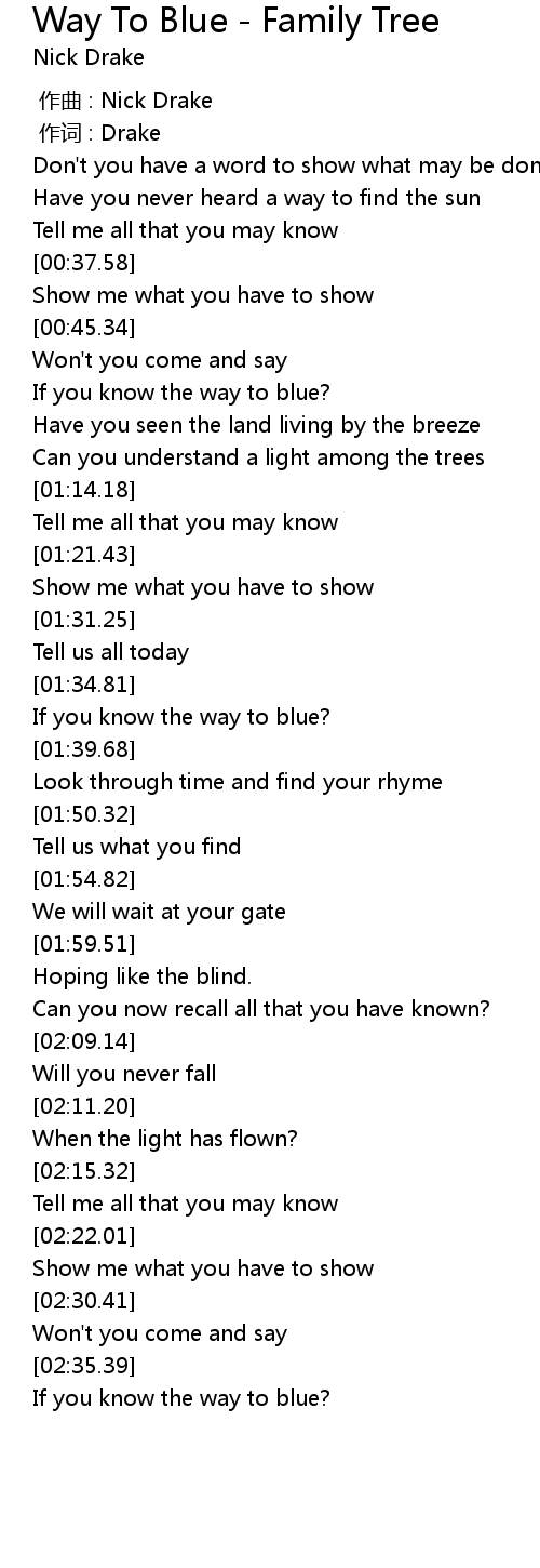 | [00:00.00] | zuò qǔ : Nick Drake |