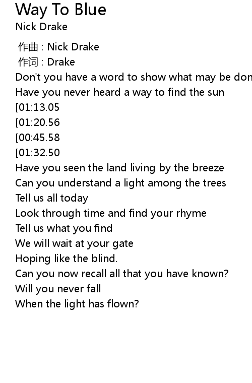 | [00:00.00] | zuò qǔ : Nick Drake |