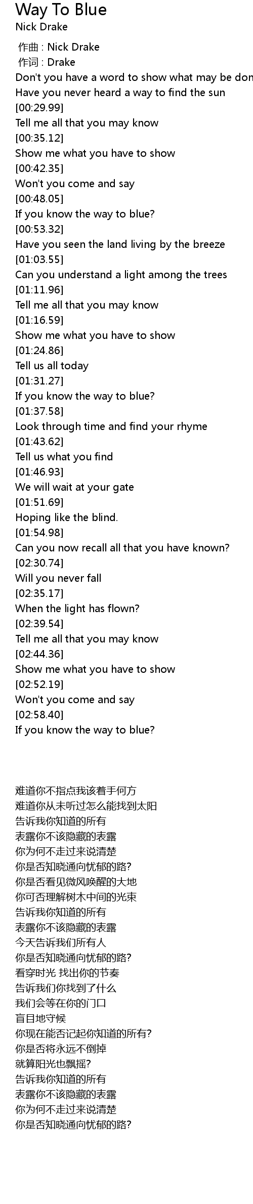 | [00:00.00] | zuò qǔ : Nick Drake |