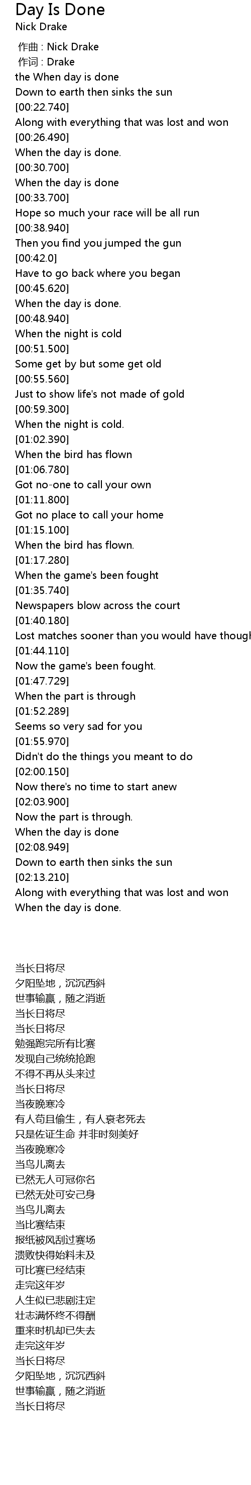 | [00:00.00] | zuo qu : Nick Drake |