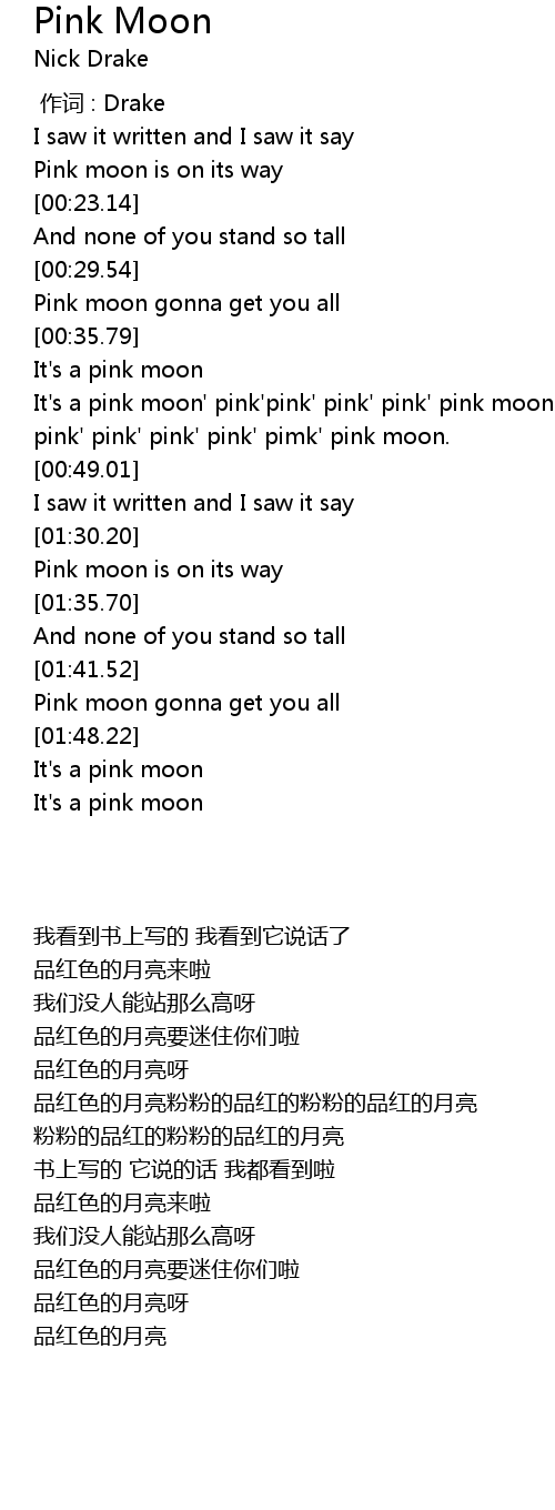 | [00:18.68] | Pink moon is on its way |