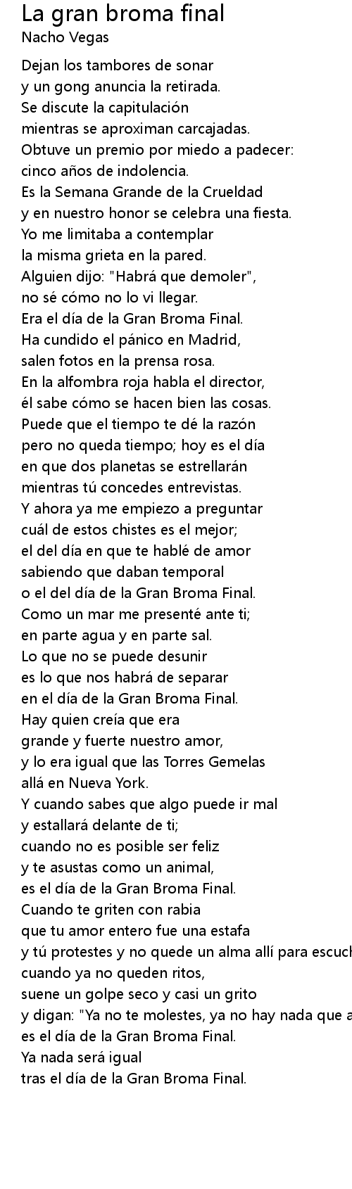 | y digan: " Ya no te molestes, ya no hay nada que arreglar", | |