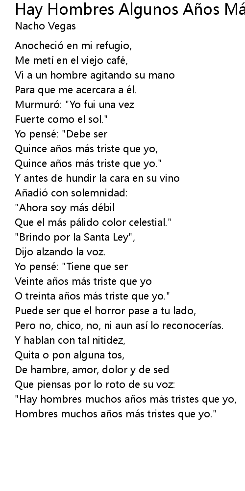 | " Hay hombres muchos a os ma s tristes que yo, | |