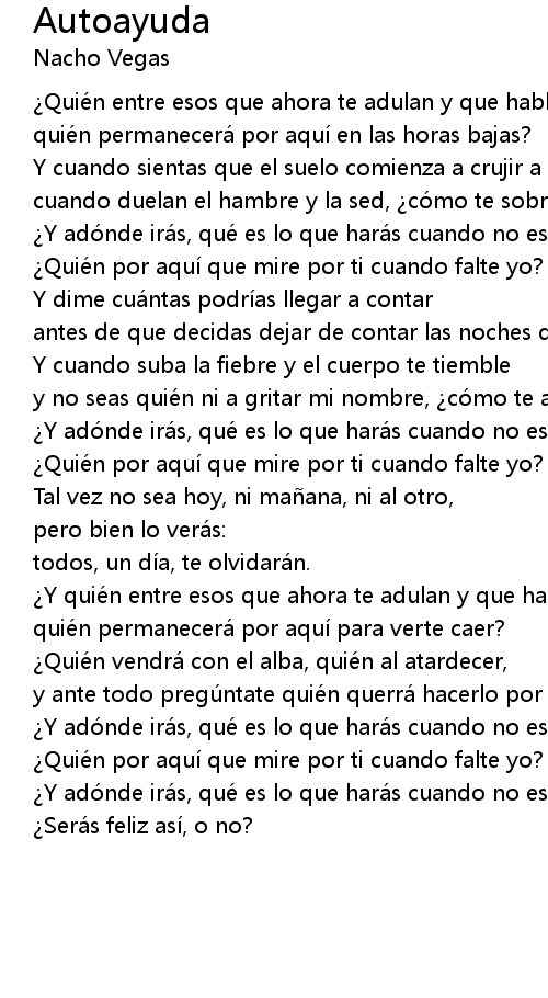 | Y ado nde ira s, que es lo que hara s cuando no este yo? | |