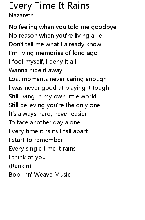 | Song | Every Time It Rains |