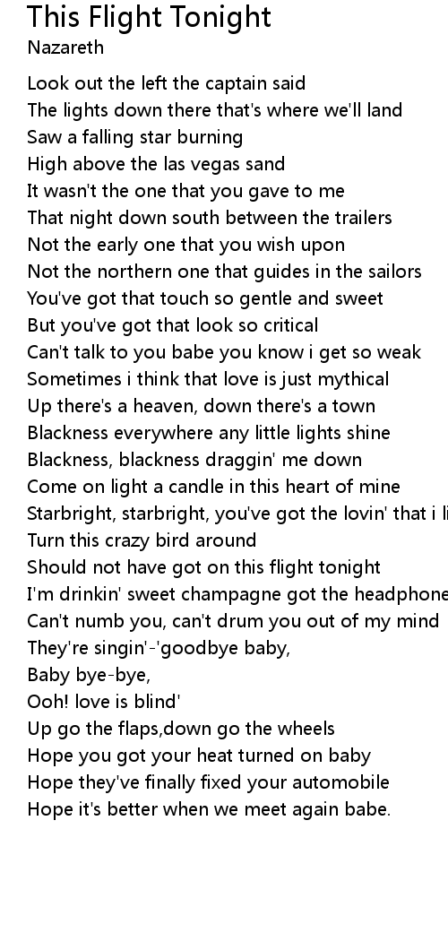 This Flight Tonight Lyrics