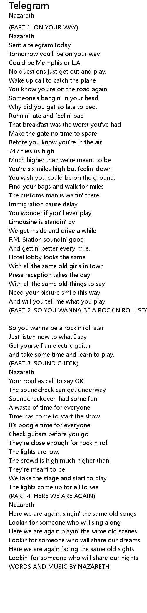 WORDS AND MUSIC BY NAZARETH