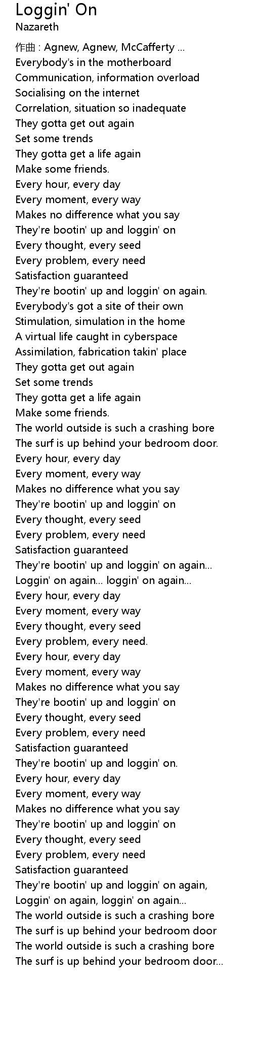 | 作曲 : Agnew, Agnew, McCafferty ... | |