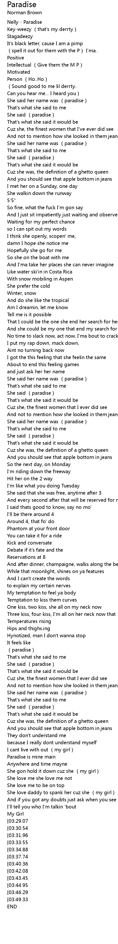 | [00:00.00] | Nelly Paradise |