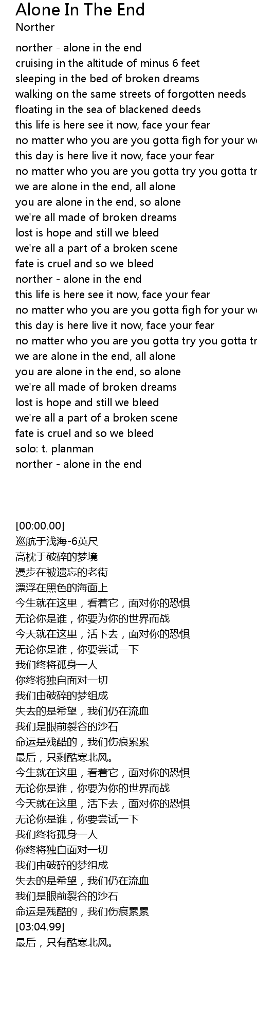 norther - alone in the end |