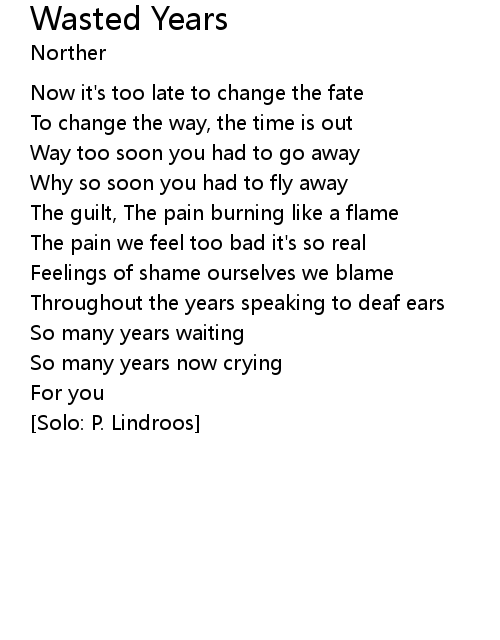 | Song | Wasted Years |