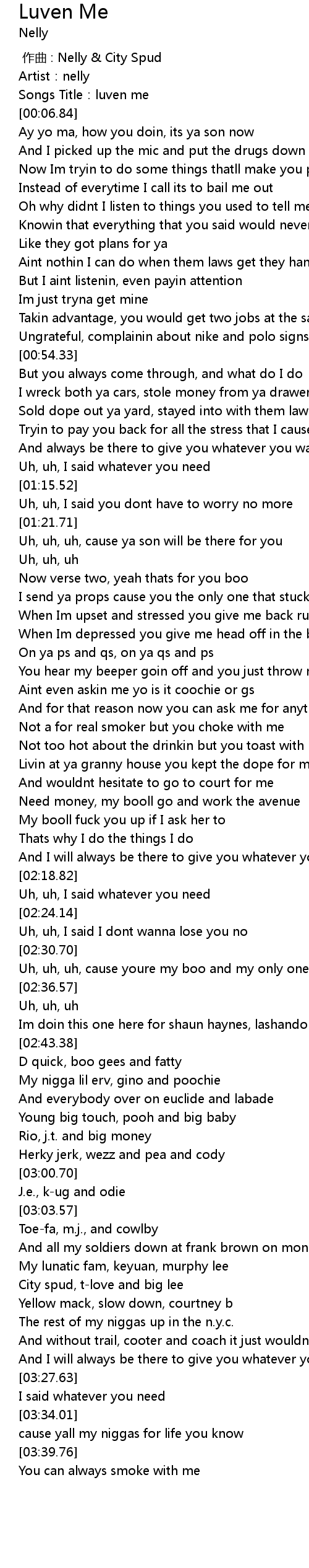 | [00:00.00] | 作曲 : Nelly & City Spud |