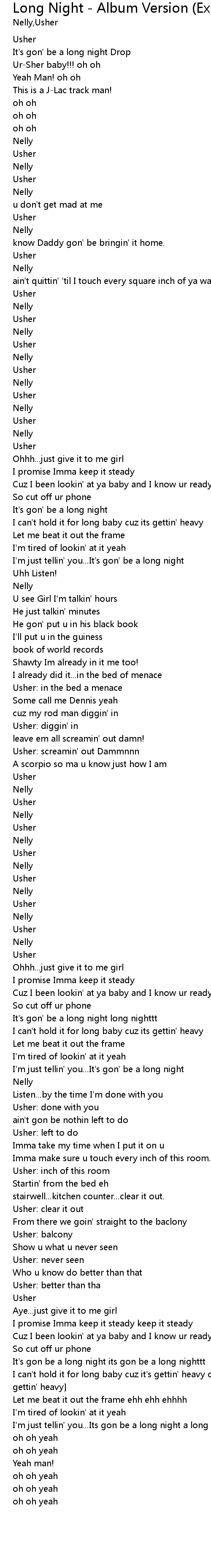 | [02:57.61]I'm just tellin' you...Its gon be a long night a long night] | |