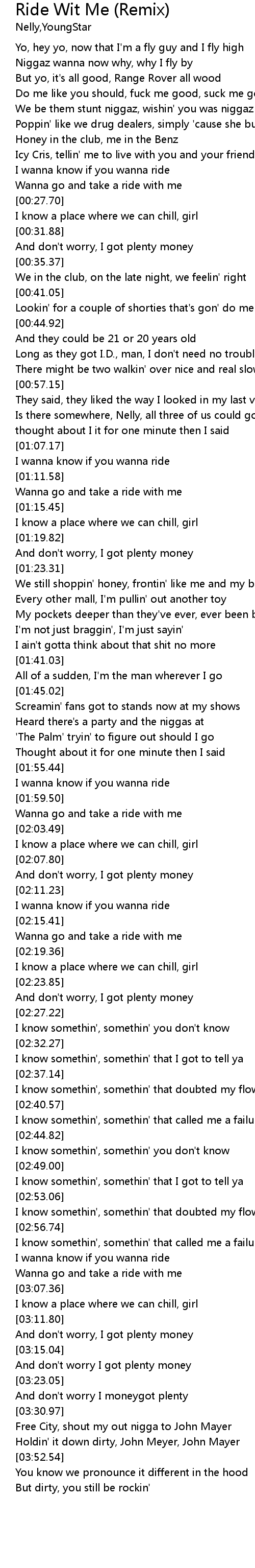 | [01:01.64] | Is there somewhere, Nelly, all three of us could go? |