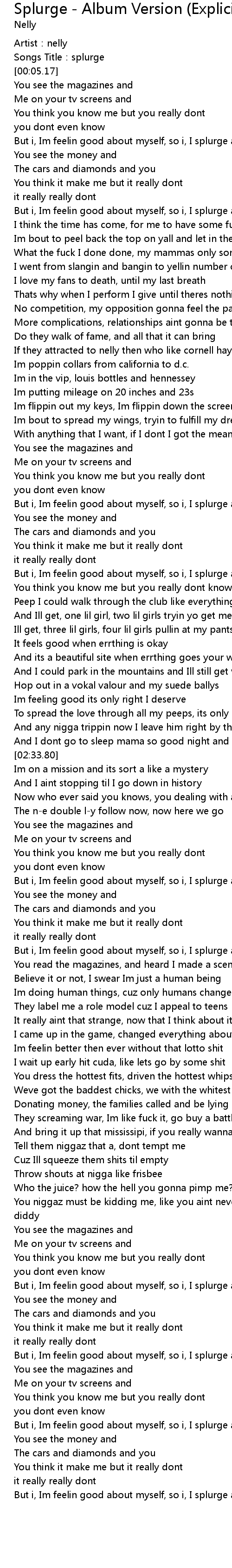| [03:07.42] | But i, Im feelin good about myself, so i, I splurge a lil hell |