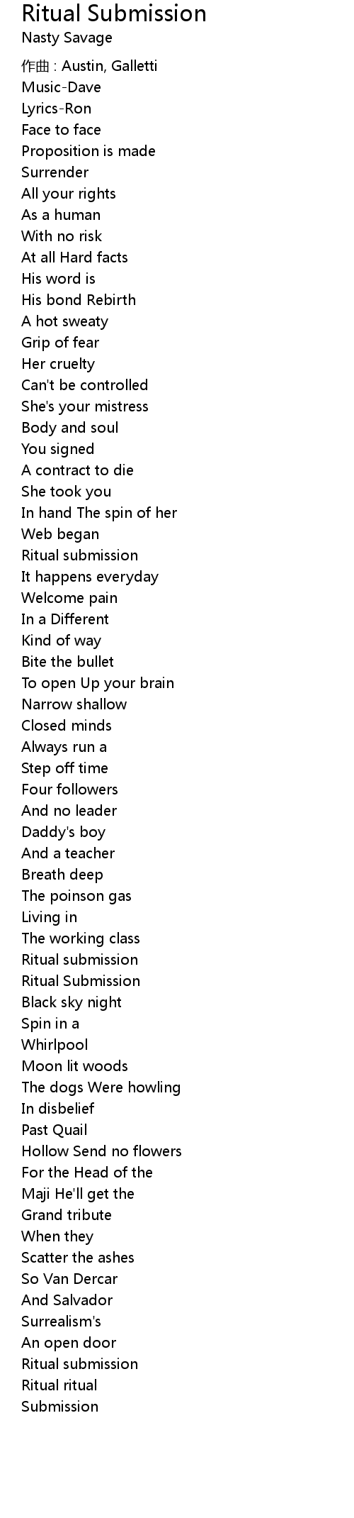 | Song | Ritual Submission |