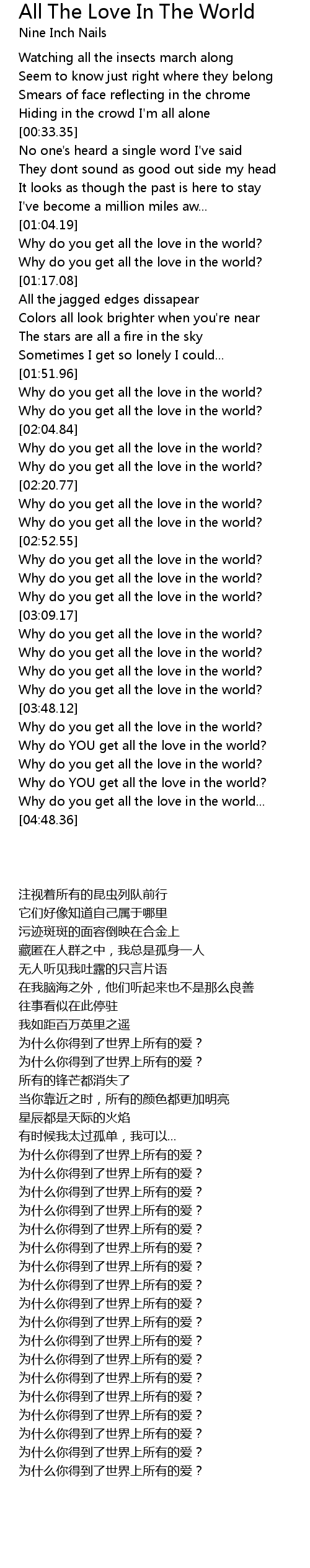Why do you get all the love in the world? |