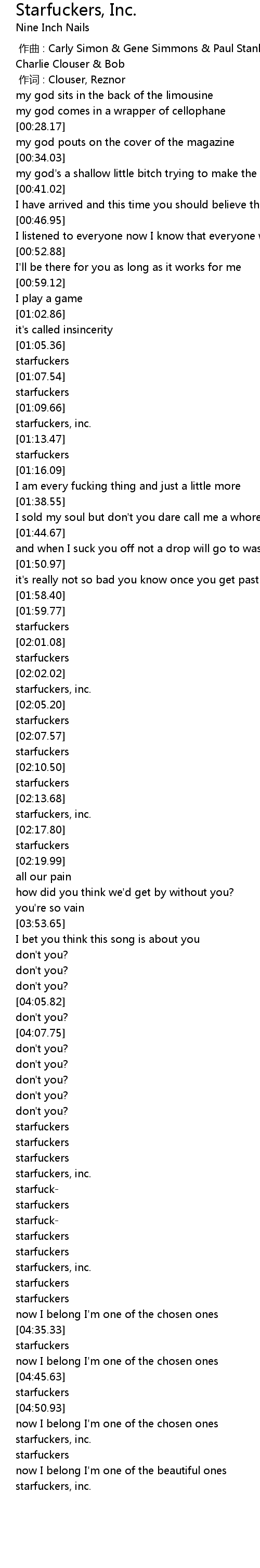 | [04:32.40] | starfuckers |