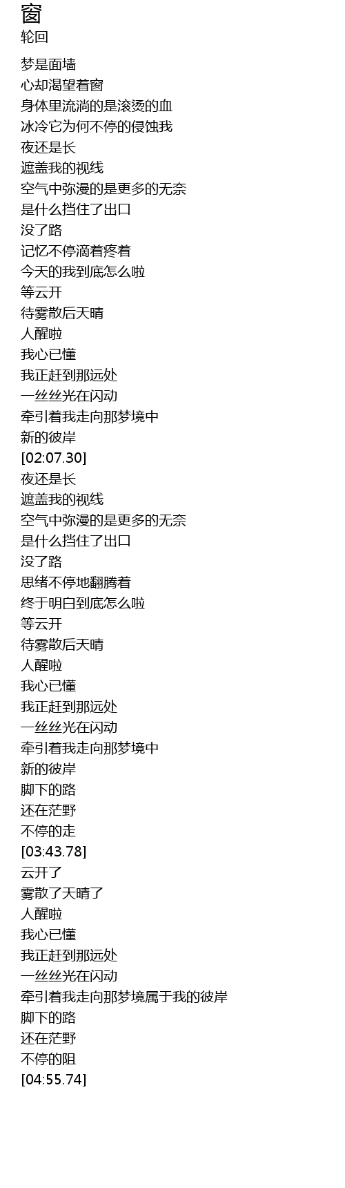 | [03:05.02] | 待雾散后天晴 |