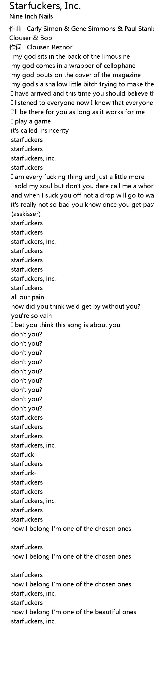 | zuò qǔ : Carly Simon Gene Simmons Paul Stanley Trent Reznor Charlie Clouser Bob | |