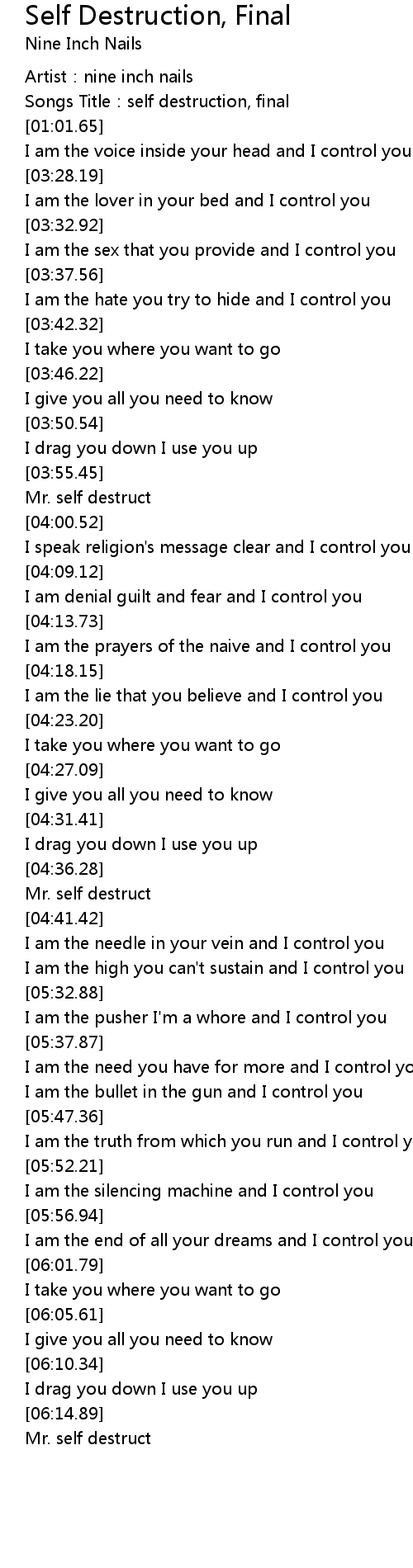 | [05:33.99] | I am the pusher I' m a whore and I control you |