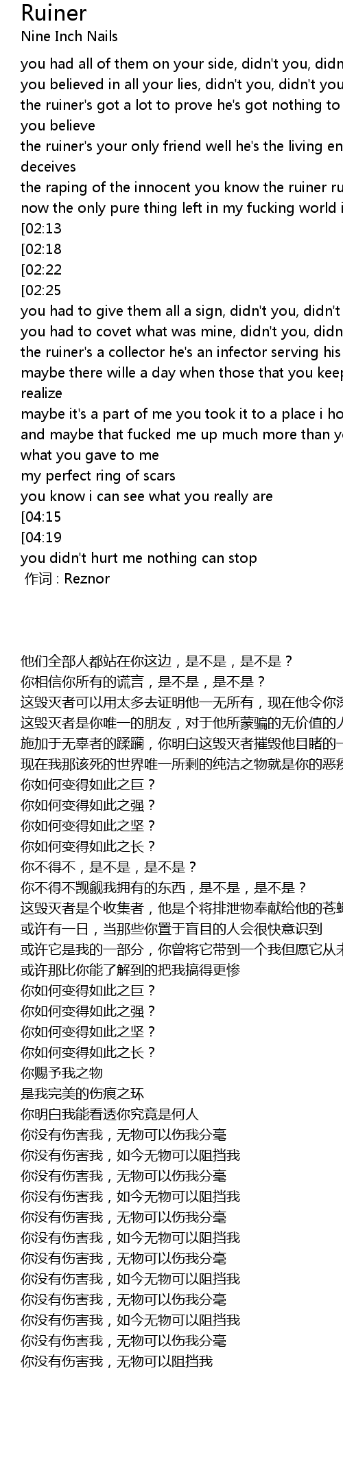 | [00:37] | the ruiner' s your only friend well he' s the living end to the cattle he deceives |