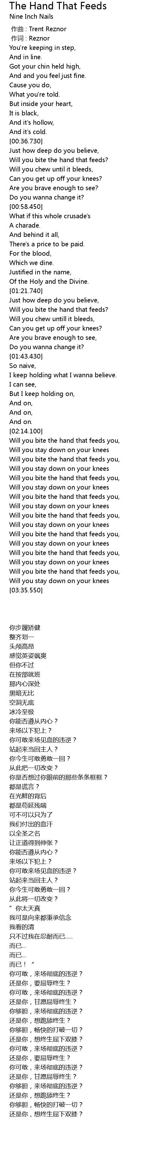 | [00:01.00] | 作词 : Reznor |