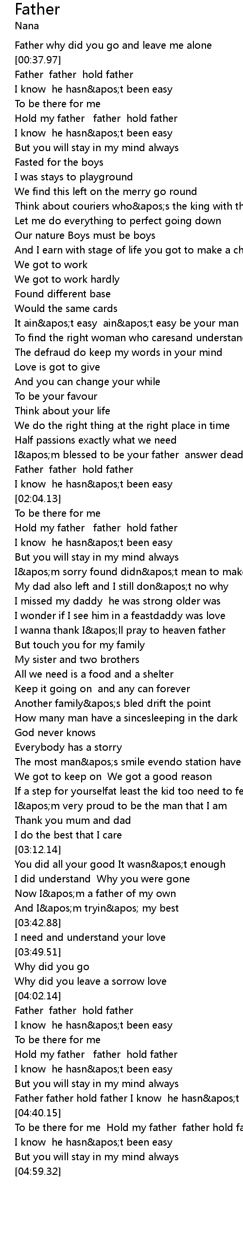 | [04:32.89] | Father father hold father I know he hasn't been easy |