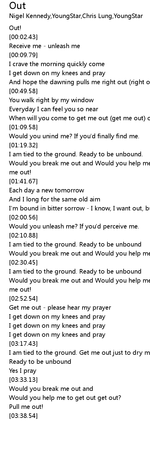 [02:40.36] Would you break me out and Would you help me to get out get out? Pull me out!