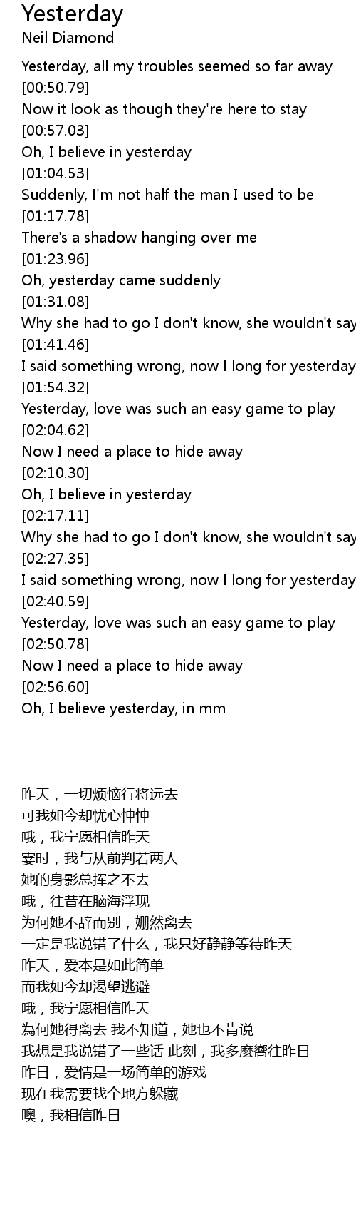 Yesterday, love was such an easy game to play |