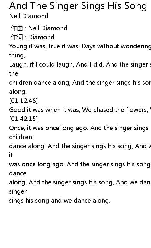 | [03:06.09] | along, And the singer sings his song, And we dance along. And the singer |