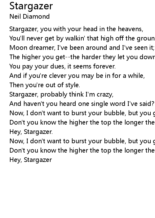 Stargazer, you with your head in the heavens, |