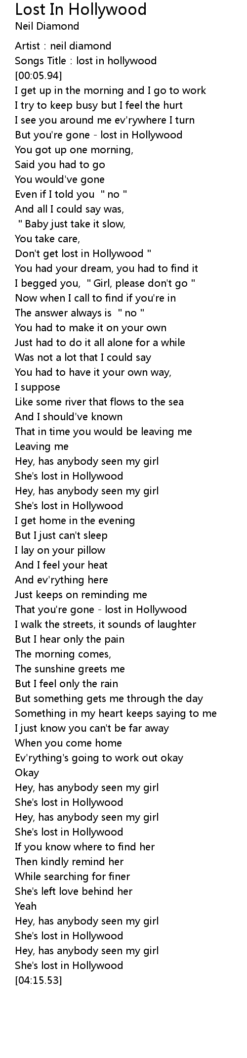 | [00:41.12] | But you're gone - lost in Hollywood |