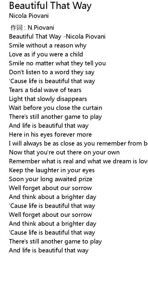 | [00:00.00] | Beautiful That Way Nicola Piovani |