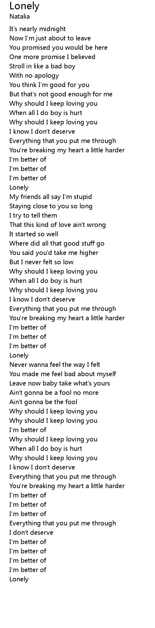 | [01:48.08] | Lonely |