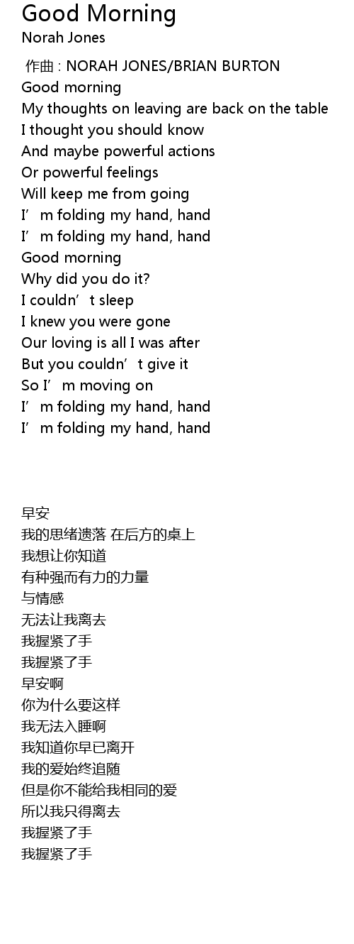 | [01:00.480] | I' m folding my hand, hand |