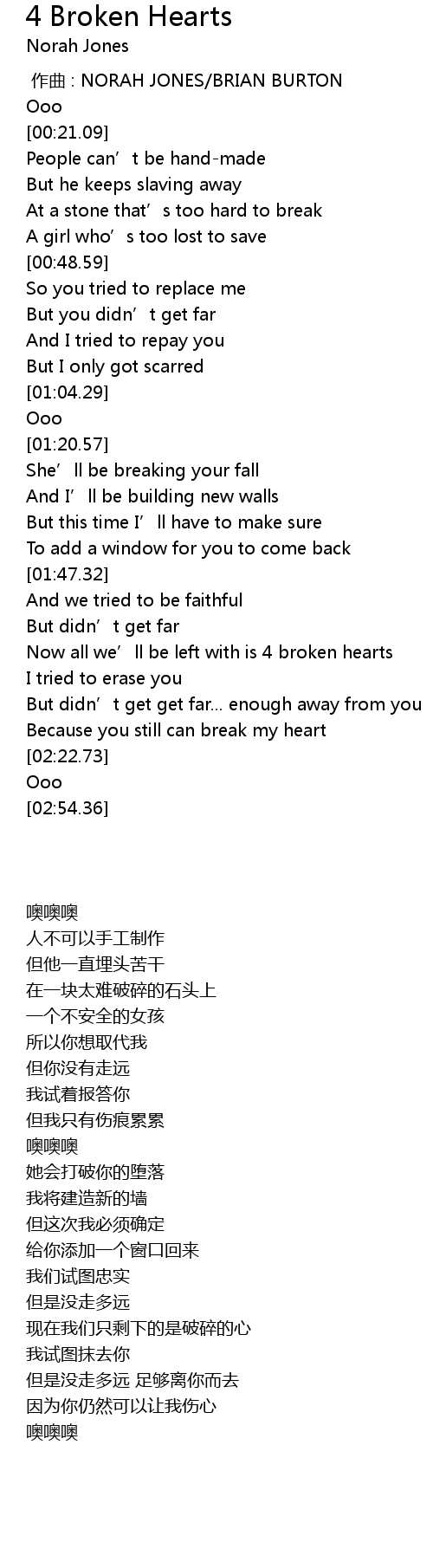 | [00:00.00] | 作曲 : NORAH JONES/BRIAN BURTON |