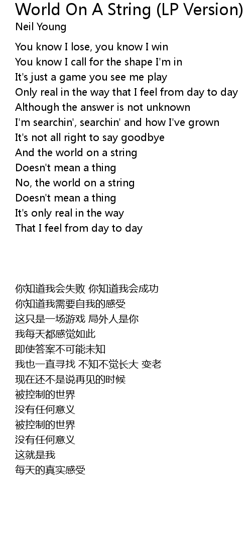 World On A String (LP Version) Lyrics