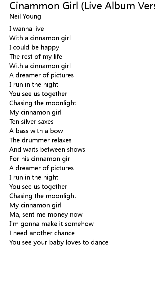 | [01:10.87] | For his cinnamon girl |