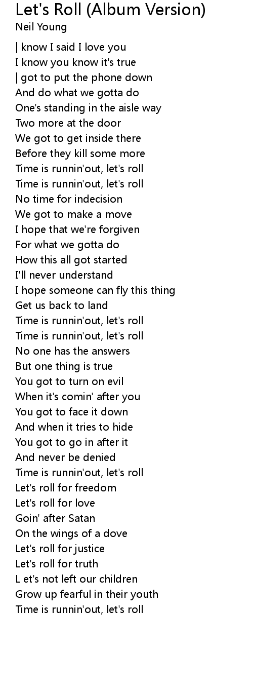 Time is runnin'out, let's roll |