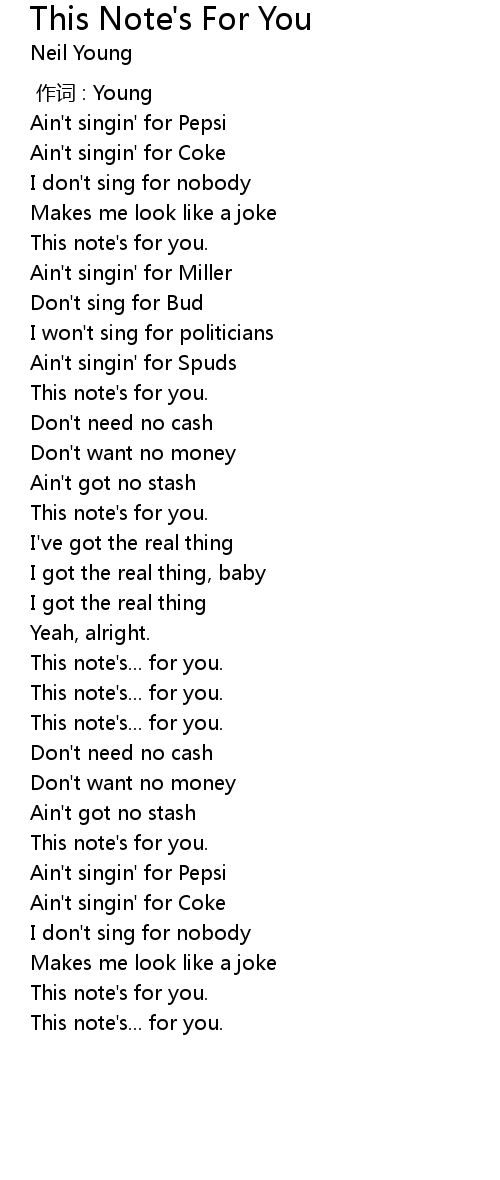 | Song | This Note's For You |