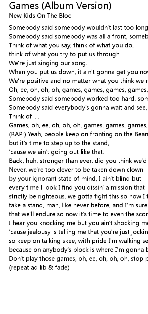 Games, oh, ee, oh, oh, oh, games, games, games, games, games. |