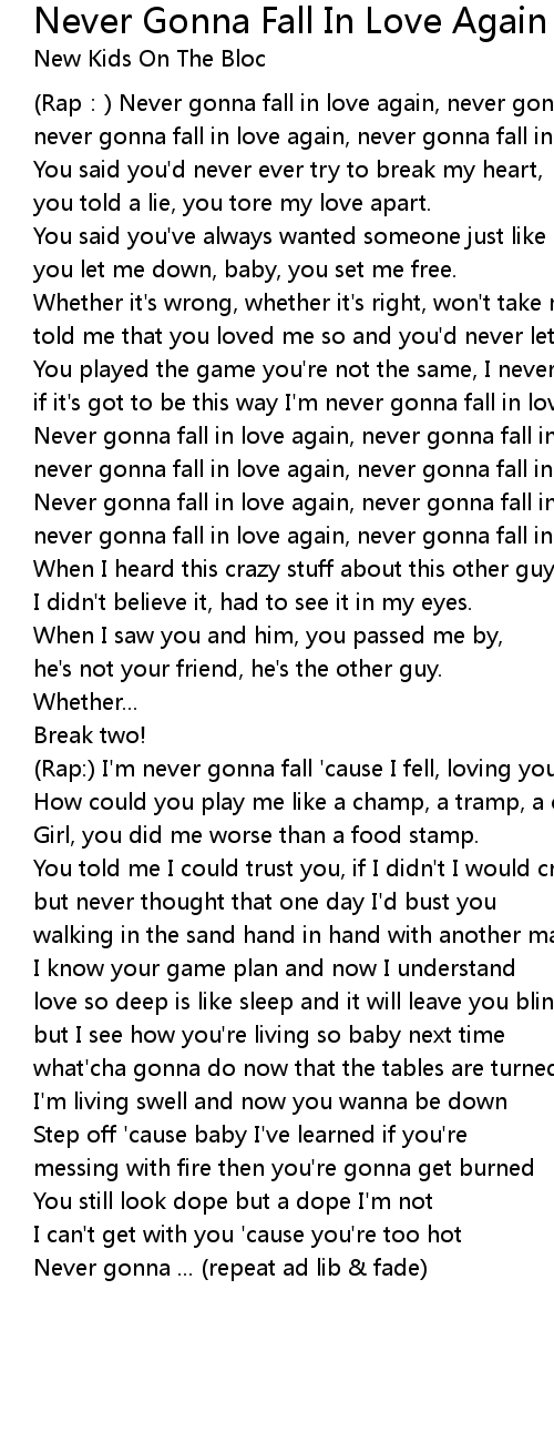 | Rap: Never gonna fall in love again, never gonna fall in love again, | |